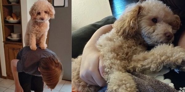 Anna is a 3 year-old apricot small poodle. One of her parents was a toy poodle, and the other was a mini poodle. She weighs 12.5 pounds and is 11.5 inches tall.